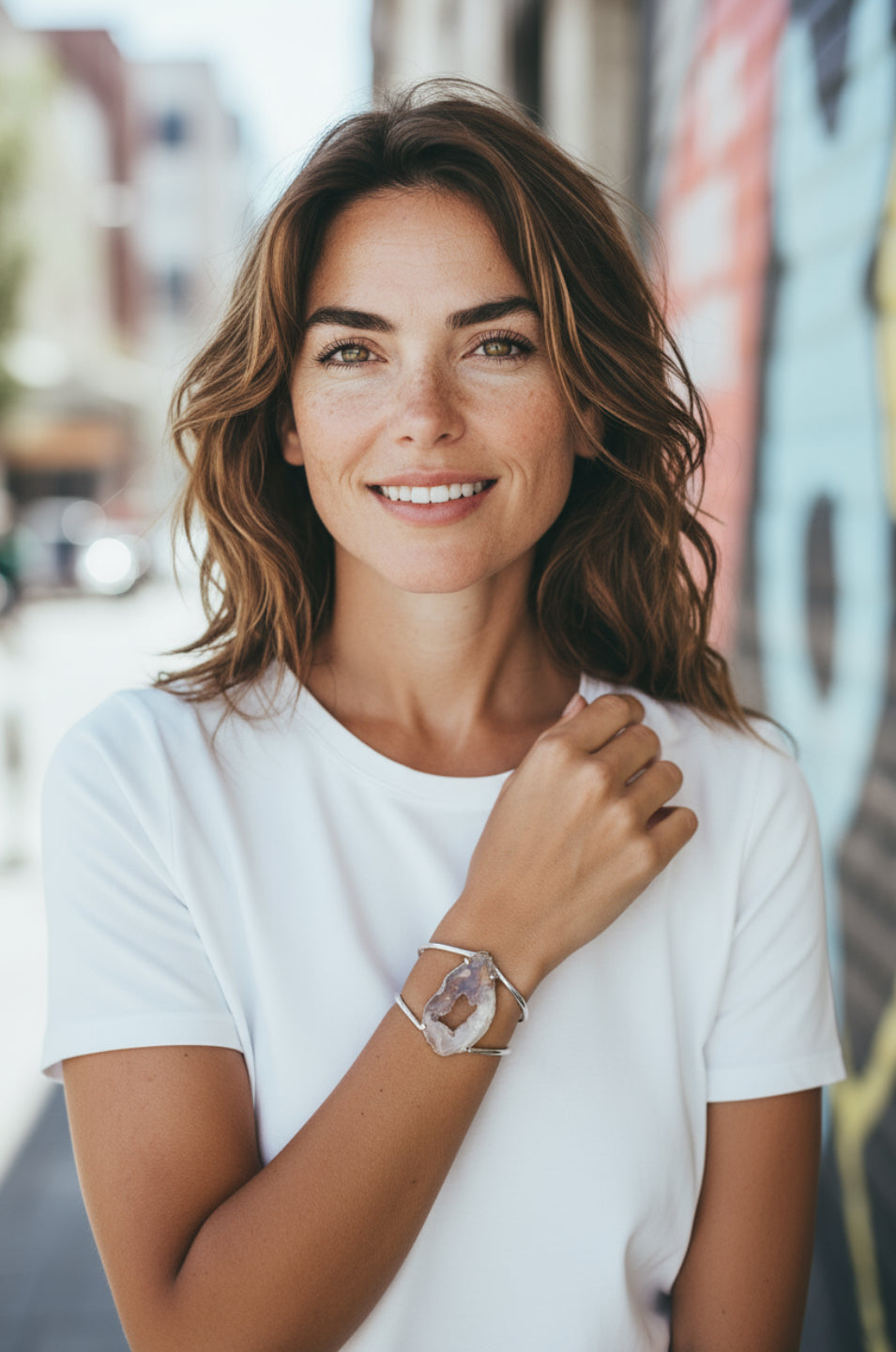 Elevate your style with the Geode Cuff, a stunning blend of natural elegance and boho sophistication. This cuff showcases a raw geode centerpiece, making each piece uniquely captivating. Perfect for adding an organic yet refined touch to any outfit, it balances earthy beauty with modern design. Wear it to express your free spirit while maintaining a polished look.