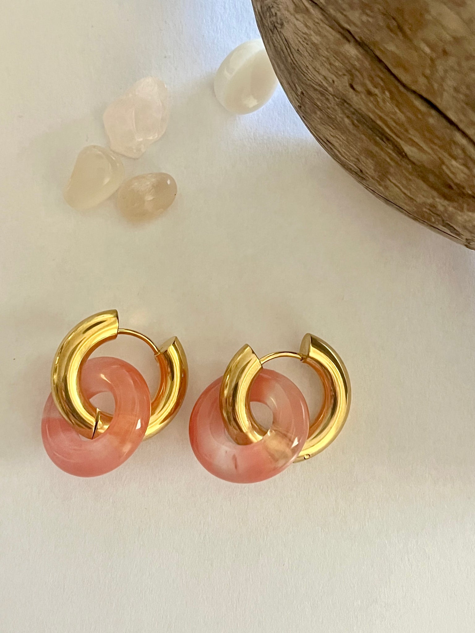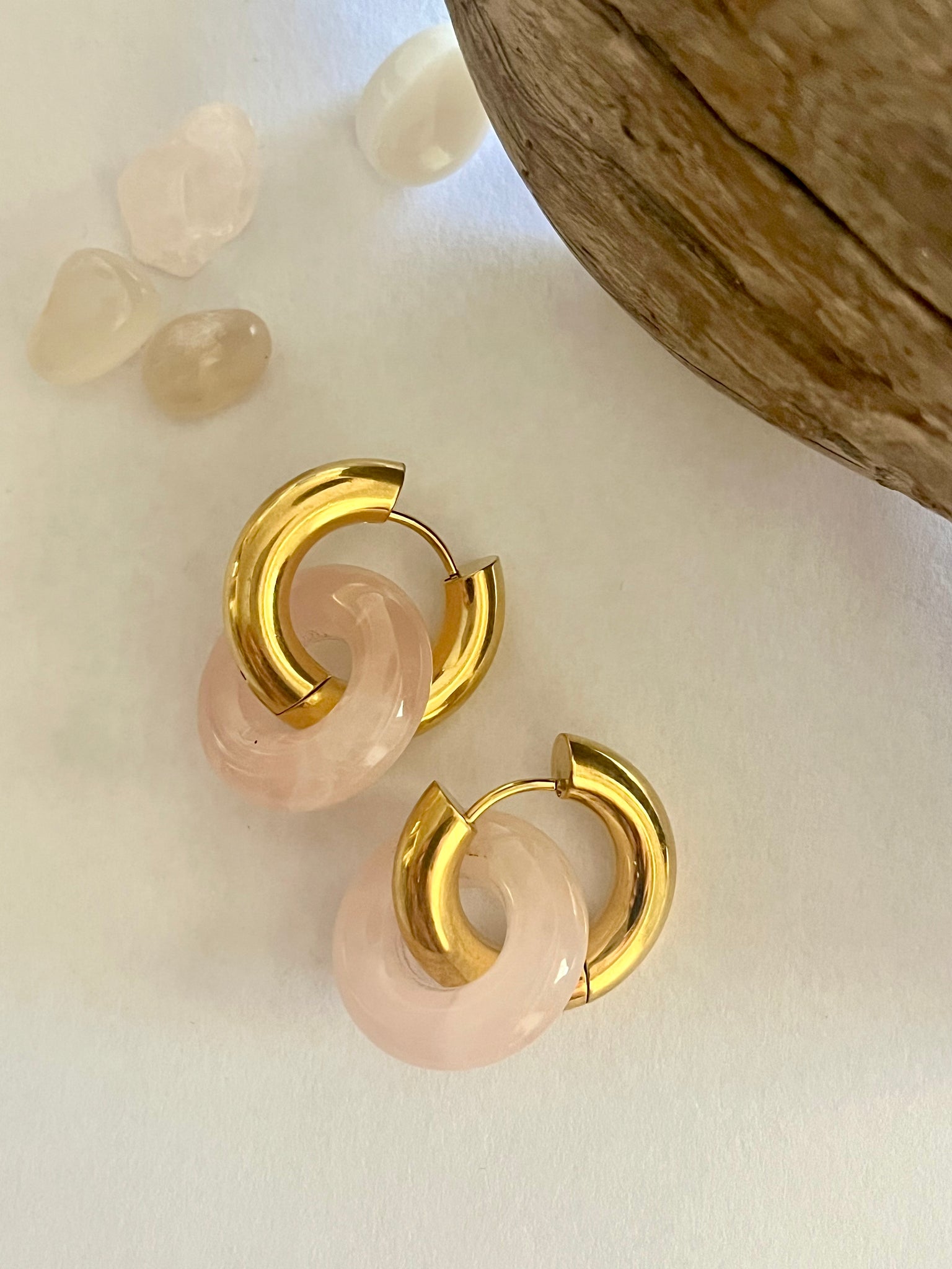 - gold hoop with rose quartz charm or watermelon rose quartz gold charm